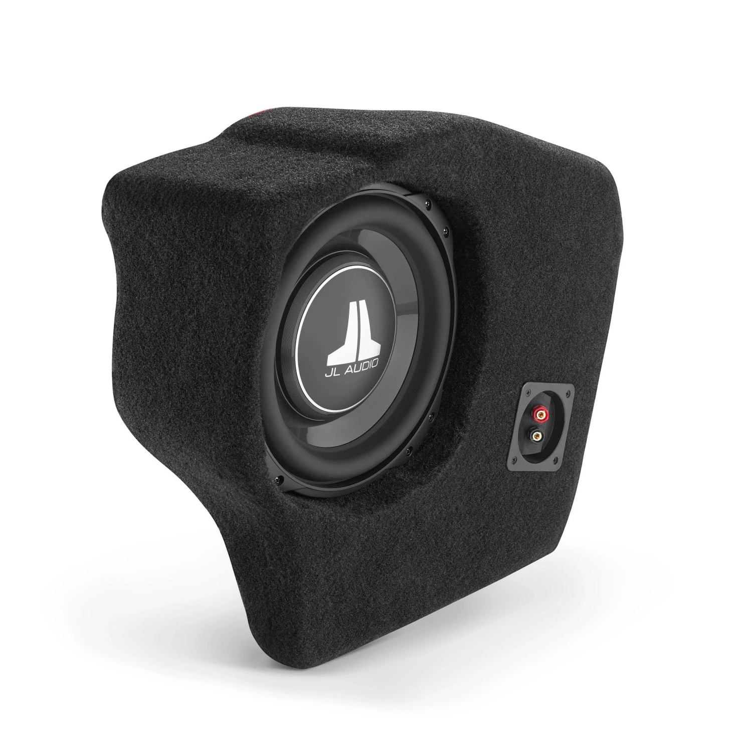 To overcome this challenge, our engineers developed a subwoofer solution that installs invisibly, behind the driver’s side cargo panel, with no loss of storage space. Featuring 100% fiberglass construction, this Stealthbox® is equipped with one of our innovative, 10-inch TW3 thin-line subwoofers in a custom-formed, sealed enclosure.